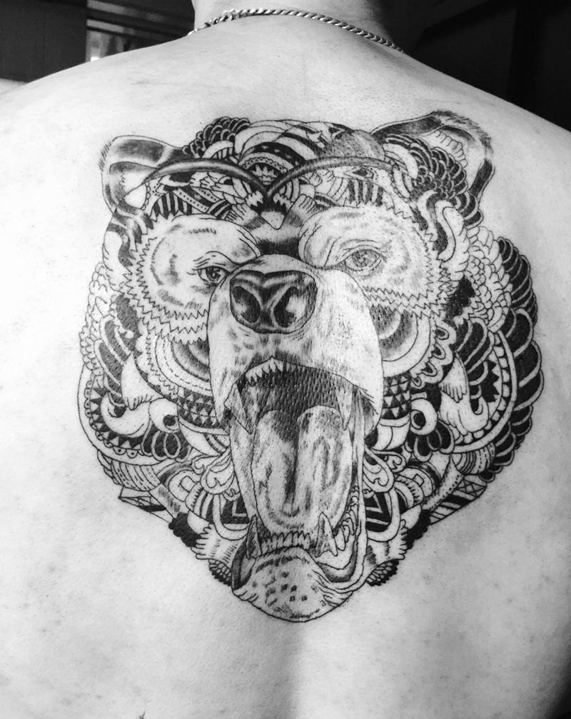 一次完成的熊纹身图片