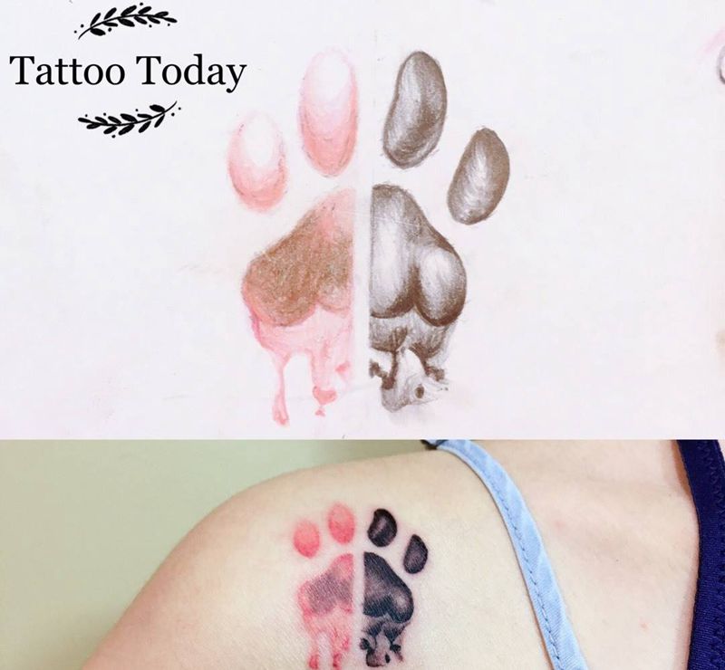 原创萌爪爪纹身图片_肩部胸部成品手稿原创动物清新静物纹身图案
