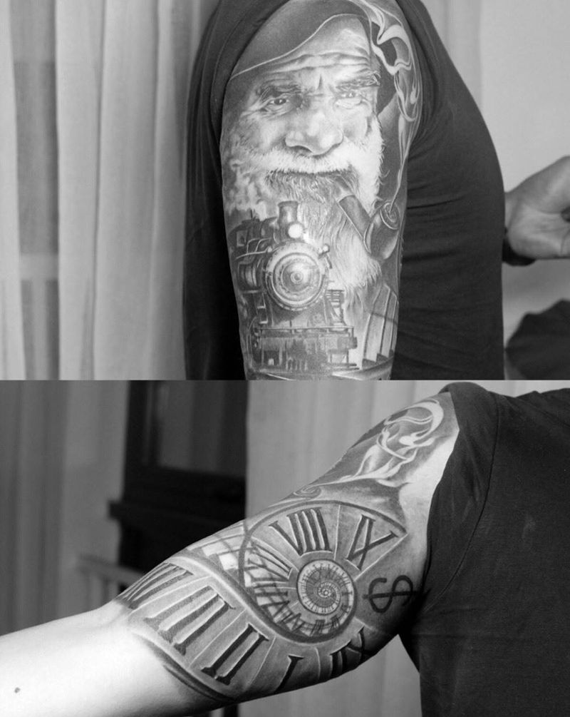 生命的时钟纹身图片_成品手臂清新写实肖像欧美人物原创静物纹身图案
