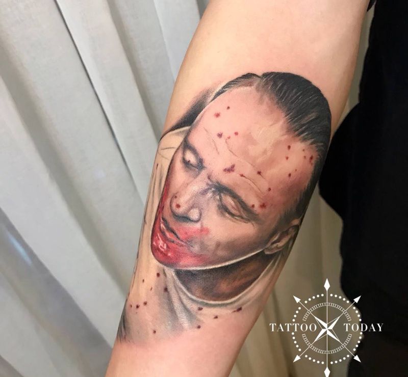 当前位置: 首页 >四川省成都市纹身店-TattooToday纹身图案>肖像写实 汉尼拔纹身图片_成品手臂欧美写实人物肖像纹身图案