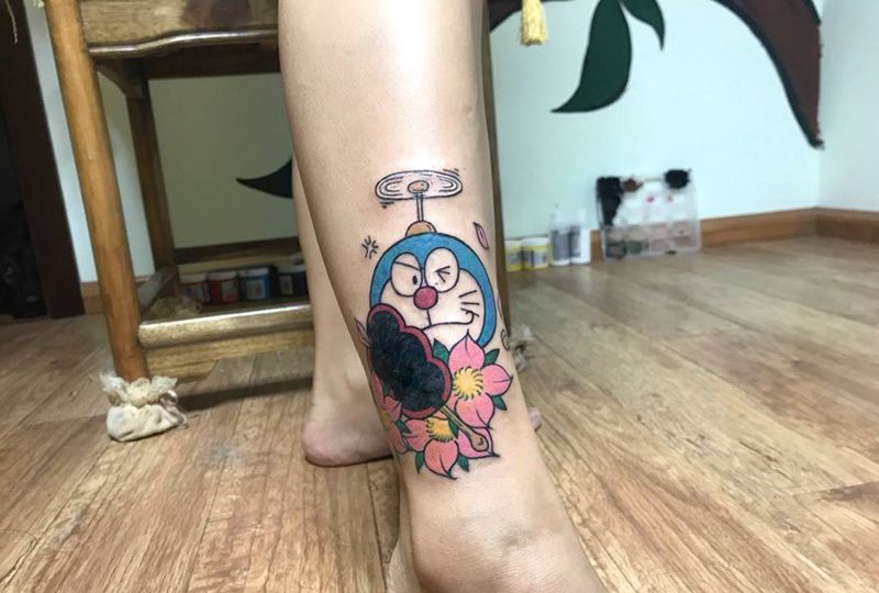 • T包小腿吹火男+阿多福纹身图片_腿部老传统新传统吹火男阿