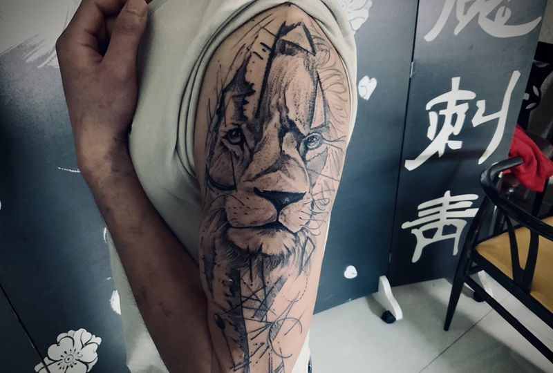 当前位置: 首页 >四川省成都市纹身店-画魔刺青纹身图案>手稿风狮子纹身图片_肩部点刺纹身图案