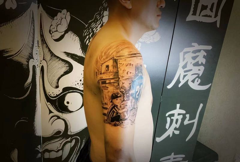 当前位置: 首页 >四川省成都市纹身店-画魔刺青纹身图案>老男人的信仰纹身图片_肩部New School纹身图案
