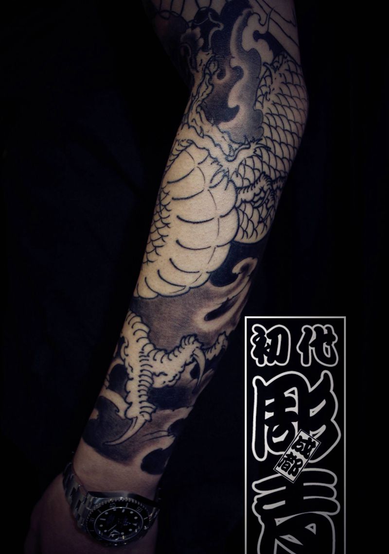 当前位置: 首页 >四川省成都市纹身店-成都初代目彫青刺青纹身图案>日式新传统九分袖纹身图片_手臂新传统日式刺青龙悟空纹身图案