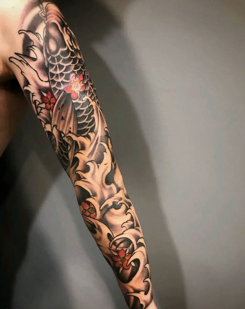 当前位置: 首页 >四川省成都市纹身店-山谛刺青纹身图案>传统鲤鱼海浪纹身图片