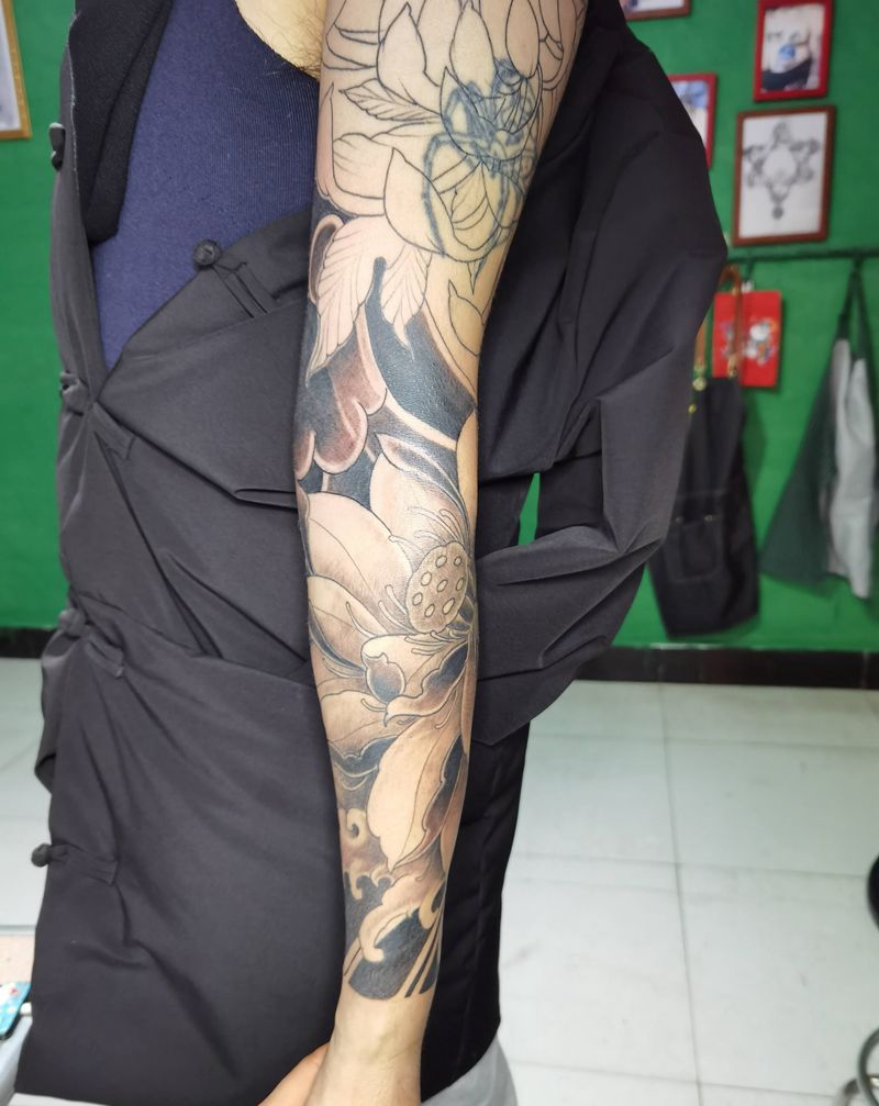 当前位置: 首页 >四川省成都市纹身店-墨刺纹身纹身图案>花臂未完成下次纹身图片_手臂纹身图案