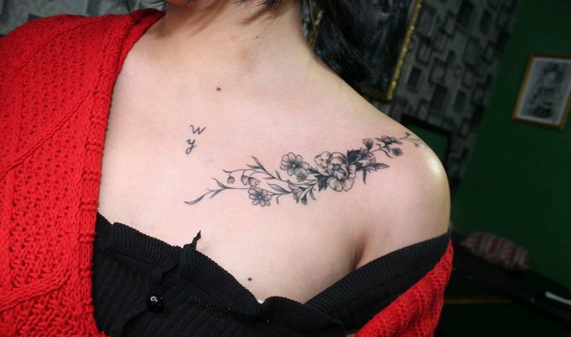 花纹身图片_胸部纹身图案