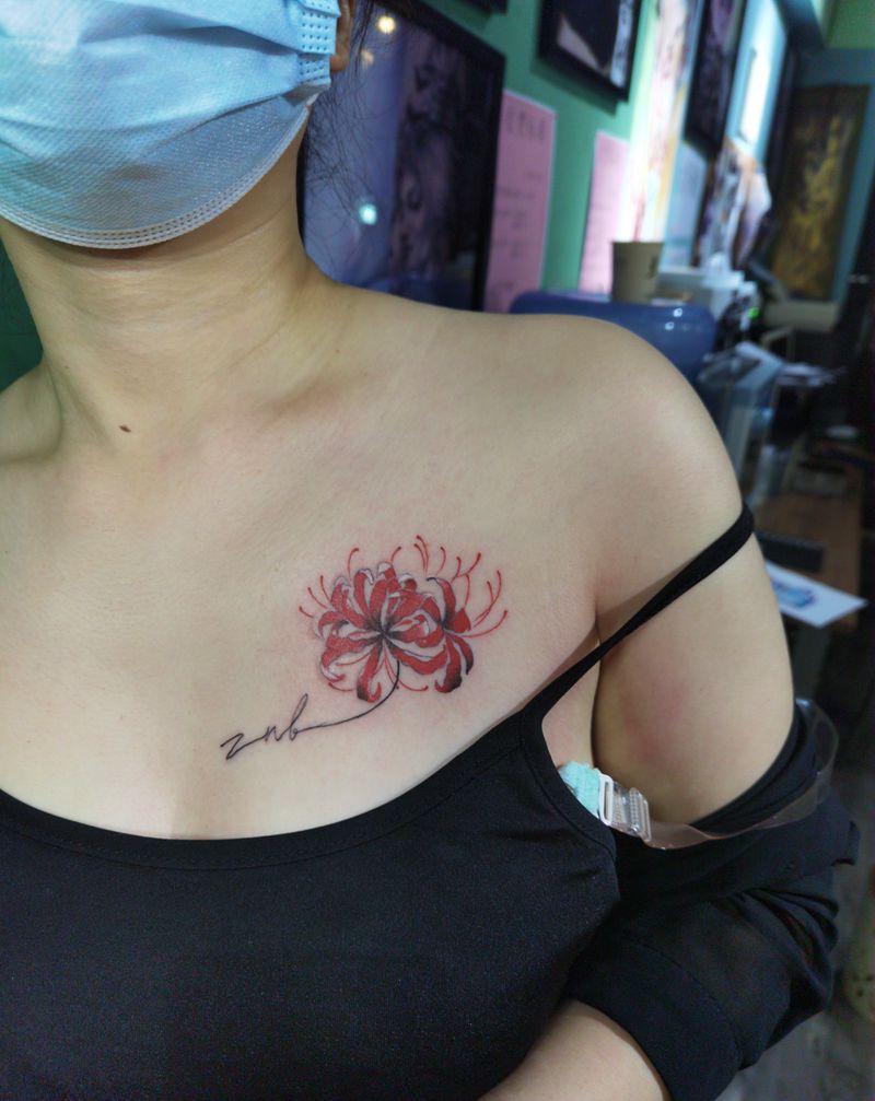 彼岸花纹身图片_胸部纹身图案