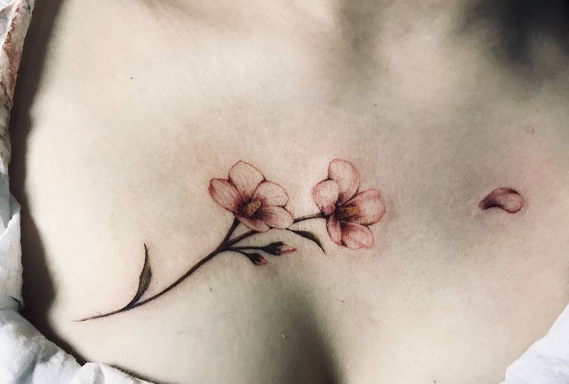 当前位置: 首页 >四川省成都市纹身店-辛刺青纹身图案>胸部小花纹身图片_胸部腰部新传统欧美写实花锁骨花胸纹身图案