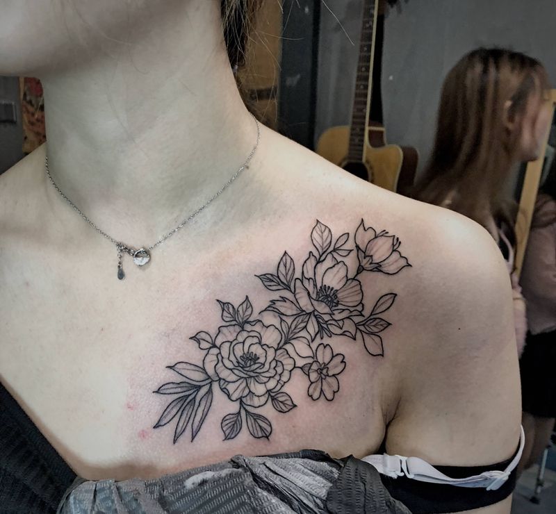 • 女性大花胸纹身_43张霸气漂亮的女性大花胸纹身图案作品