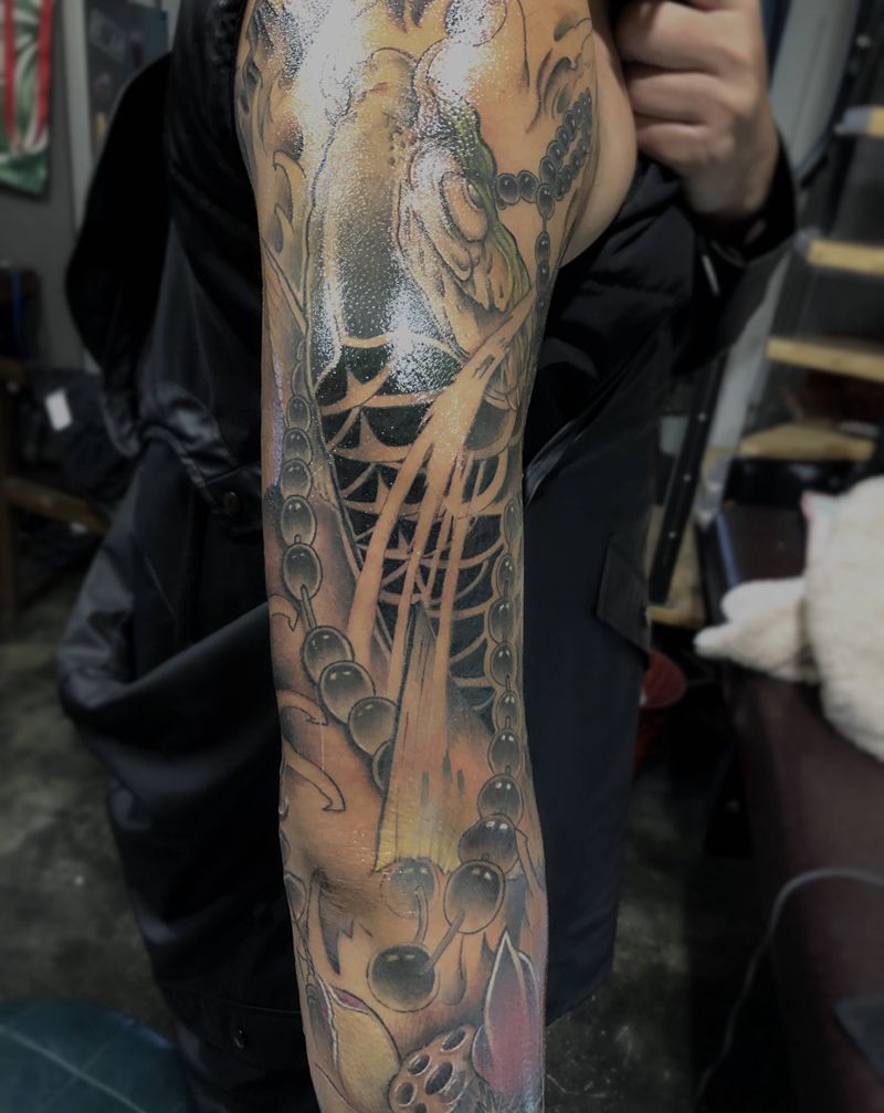 当前位置: 首页 >四川省成都市纹身店-摩根刺青纹身图案>锦鲤金蟾纹身图片_手臂新传统纹身图案