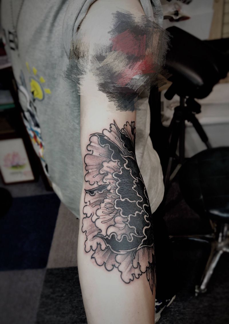 原创花开富贵纹身图片_手臂新传统纹身图案