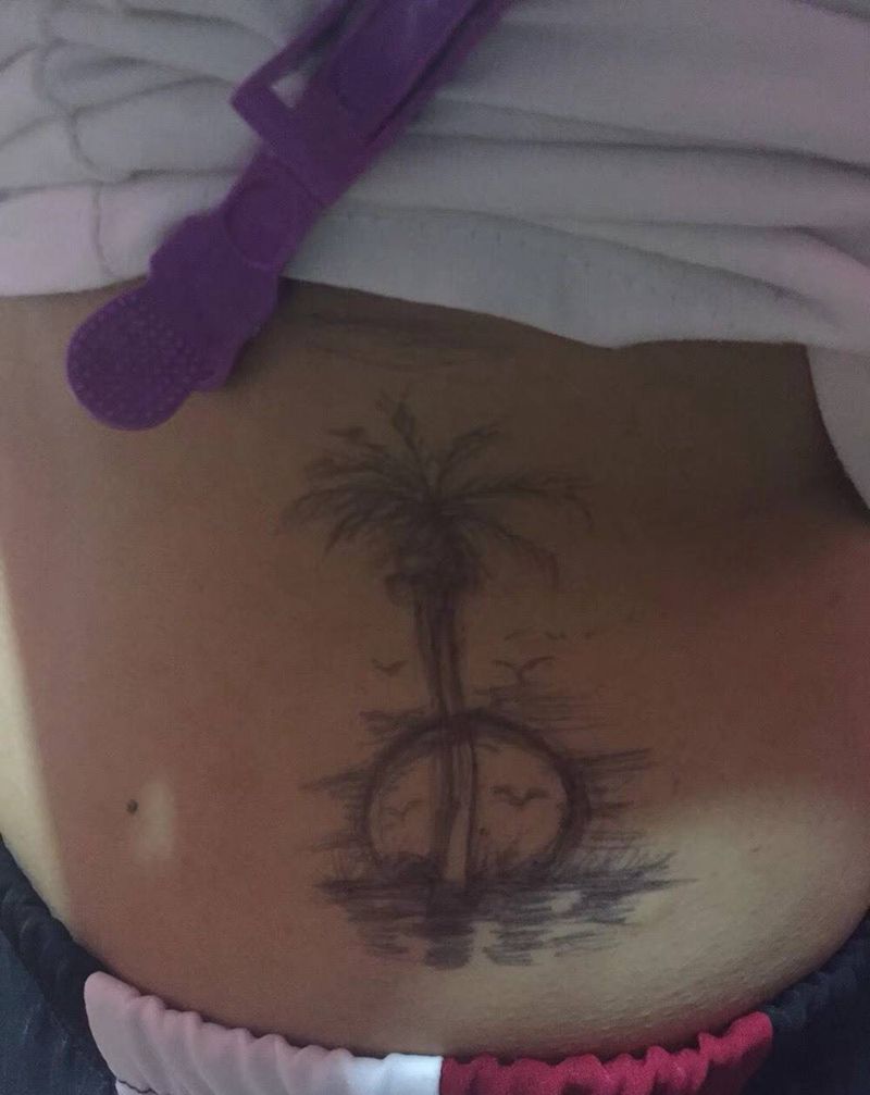 椰子树纹身图片_欧美腹部植物清新成品原创纹身图案
