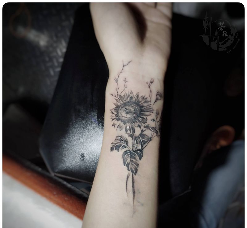 向日葵 暴力遮盖纹身图片_手部纹身图案