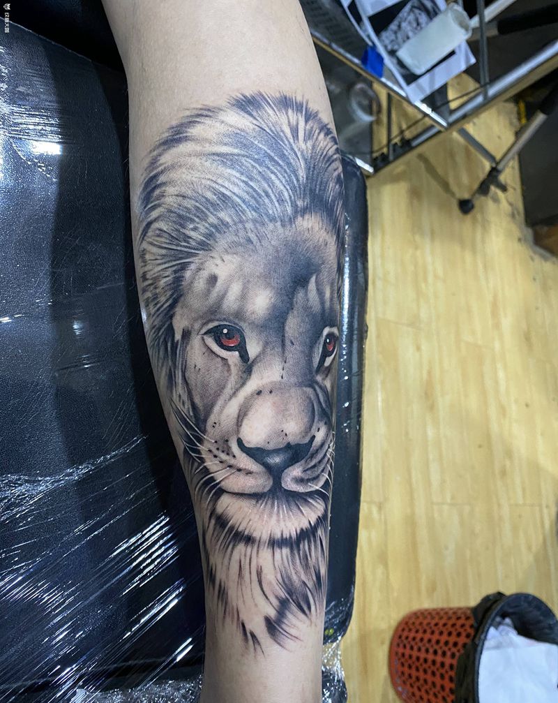 当前位置: 首页 >四川省成都市纹身店-墨客纹身纹身图案>狮子纹身图片_腿部欧美写实纹身图案
