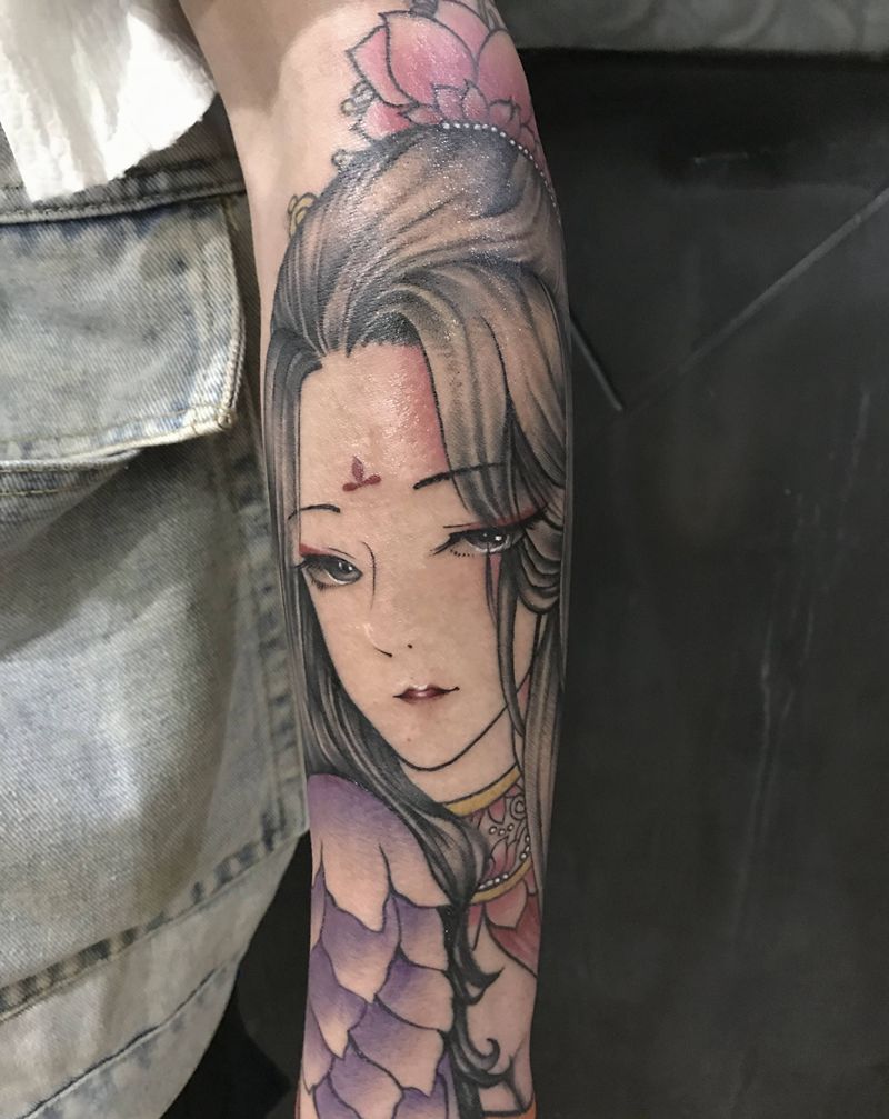 当前位置: 首页 >四川省成都市纹身店-墨客纹身纹身图案>美女纹身图片_手臂新传统纹身图案