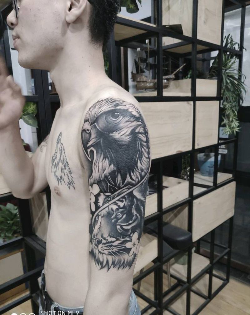 • 纹身吧推荐的披肩图腾半胛纹身图案作品展示