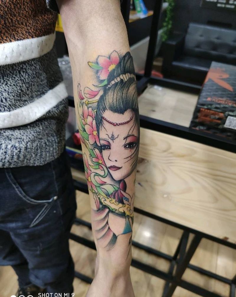 当前位置: 首页 >四川省成都市纹身店-墨客纹身纹身图案>艺伎纹身图片_手臂纹身图案
