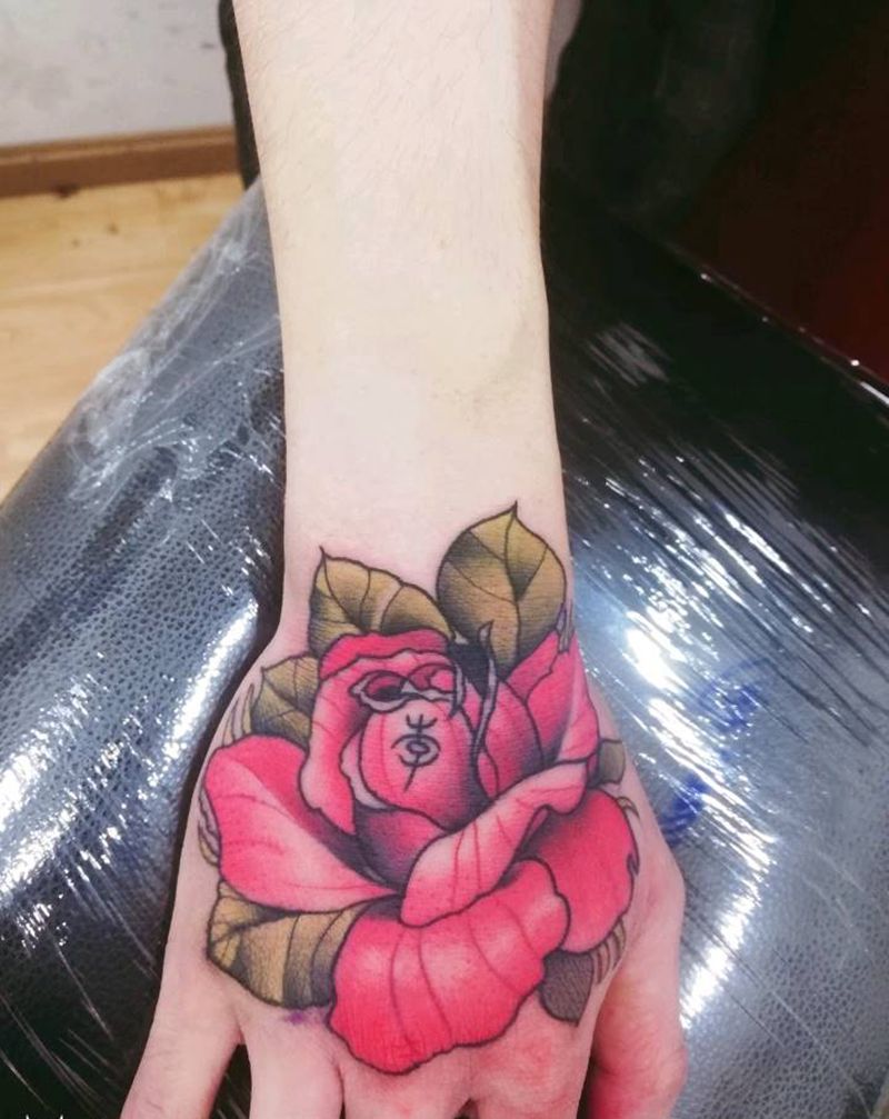 • 手背潮流时尚的玫瑰花眼睛纹身图案