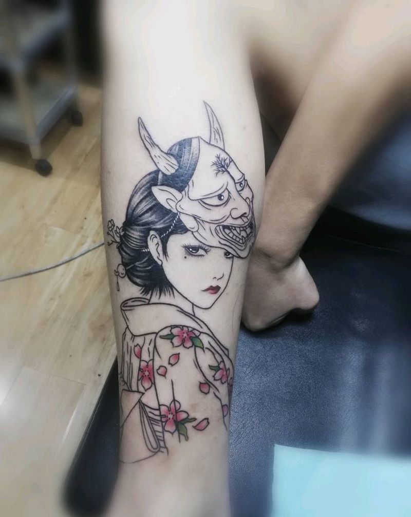 当前位置: 首页 >四川省成都市纹身店-墨客纹身纹身图案>艺伎纹身图片_腿部新传统纹身图案