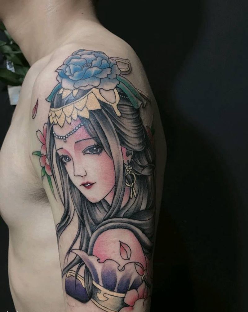 当前位置: 首页 >四川省成都市纹身店-墨客纹身纹身图案>艺伎纹身图片_手臂新传统纹身图案