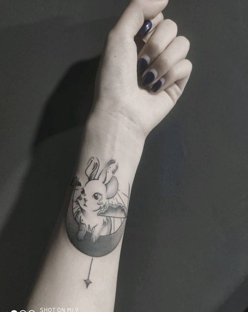 小兔子纹身图片_手部新传统纹身图案