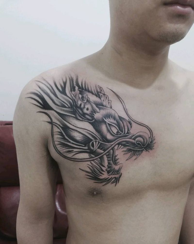龙头纹身图片_胸部纹身图案