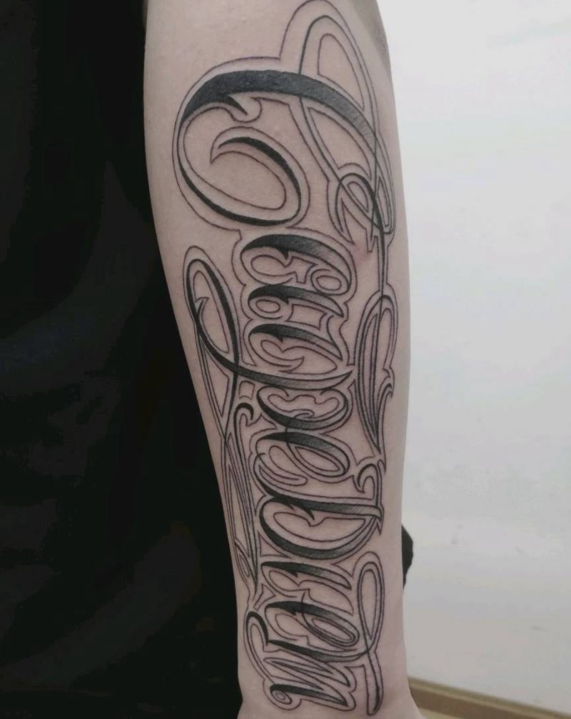 花体字纹身图片_手臂花体字纹身图案