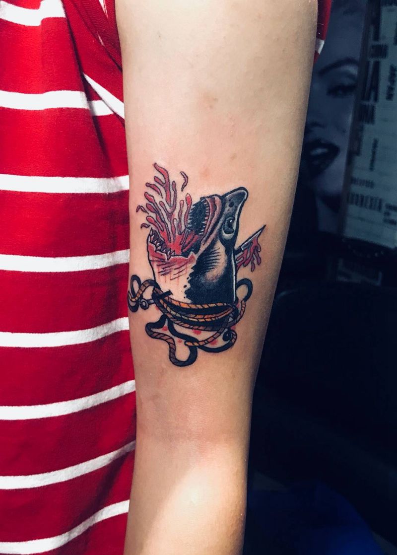 当前位置: 首页 >四川省成都市纹身店-大西刺青纹身图案>鯊纹身图片