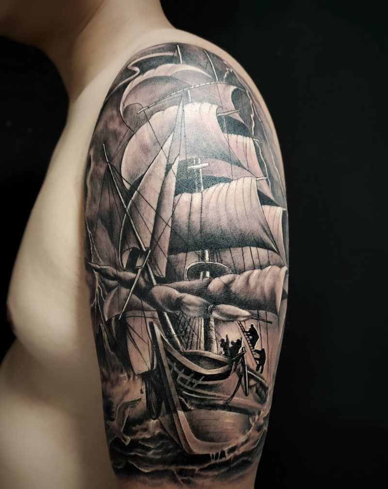 当前位置: 首页 >四川省成都市纹身店-成都楷刺青纹身工作室纹身图案>一帆风顺纹身图片_手臂欧美写实纹身图案