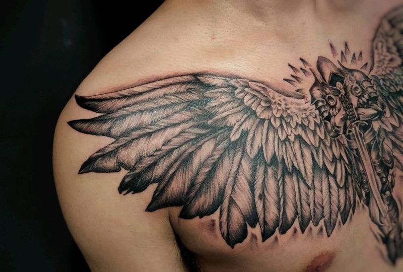 • 纹身吧推荐的披肩图腾半胛纹身图案作品展示