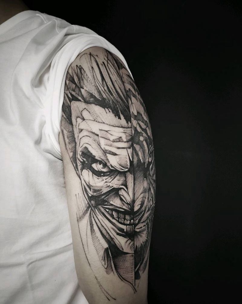 “丑”虎?纹身图片_手臂小丑,老虎纹身图案