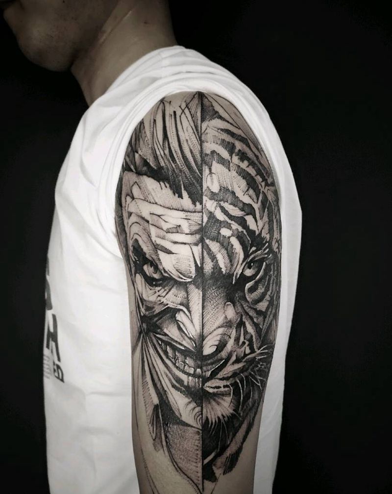 “丑”虎?纹身图片_手臂小丑,老虎纹身图案