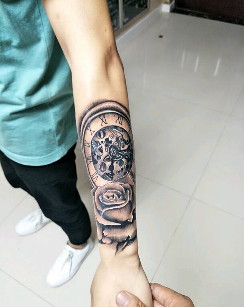 当前位置: 首页 >四川省成都市纹身店-成都楷刺青纹身工作室纹身图案>欧美人物钟表玫瑰纹身图片