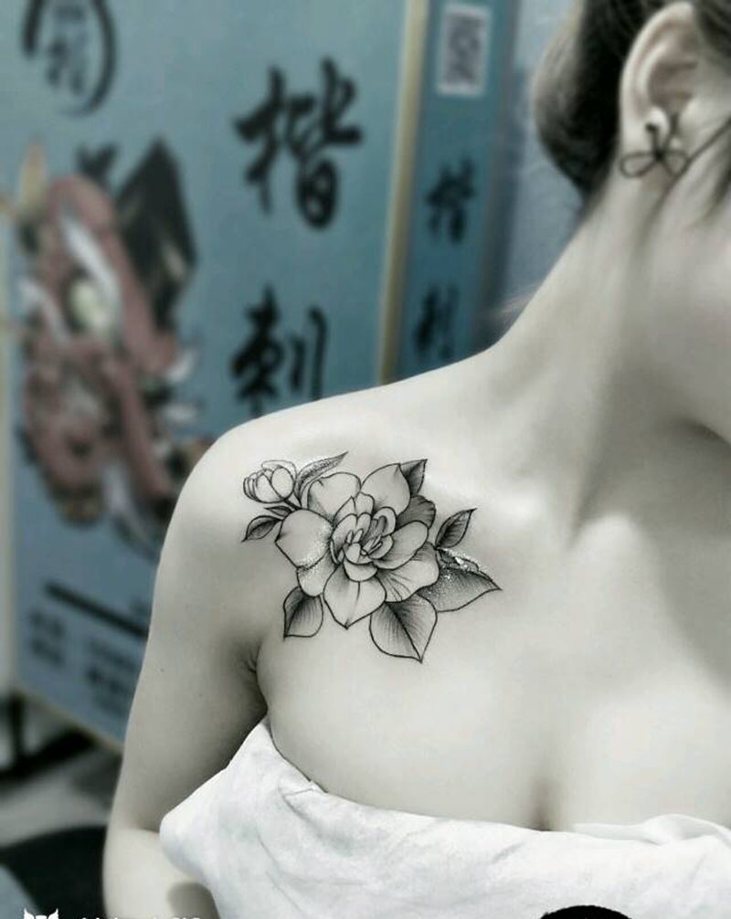 肩花纹身图片