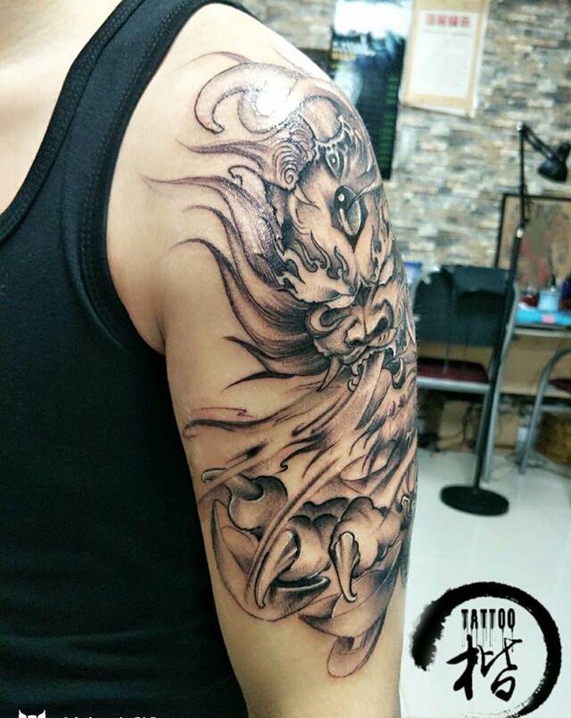 当前位置: 首页 >四川省成都市纹身店-成都楷刺青纹身工作室纹身图案>大臂唐狮纹身图片