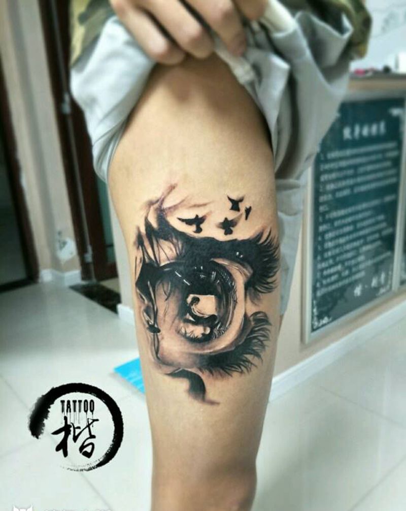 • T网红王老大花腿龙纹身图片_腿部新传统纹身图案