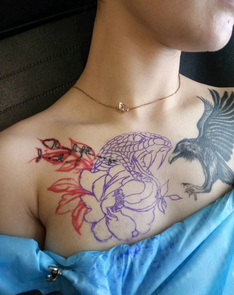 • 女性大花胸纹身_43张霸气漂亮的女性大花胸纹身图案作品