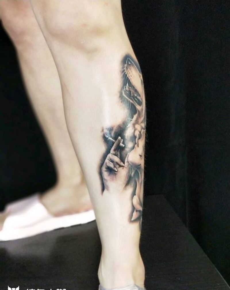 • T网红王老大花腿龙纹身图片_腿部新传统纹身图案