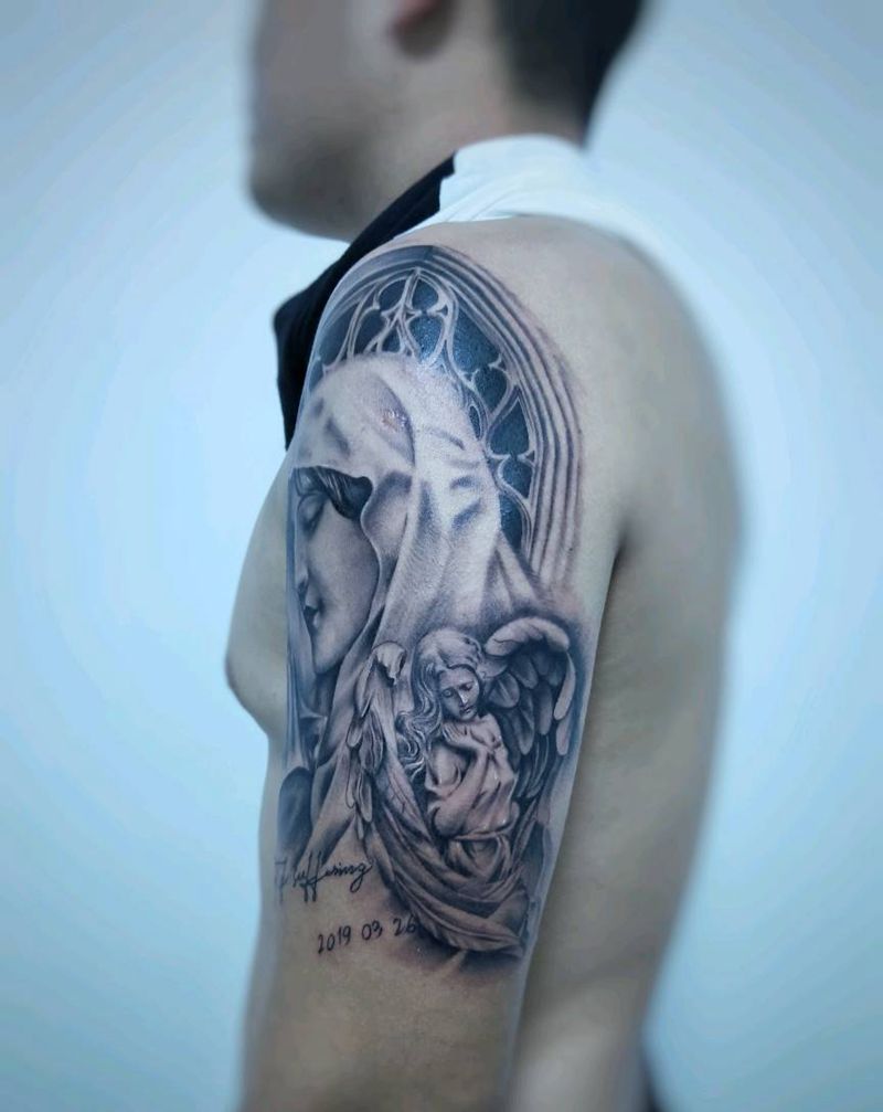 • 纹身吧推荐的披肩图腾半胛纹身图案作品展示