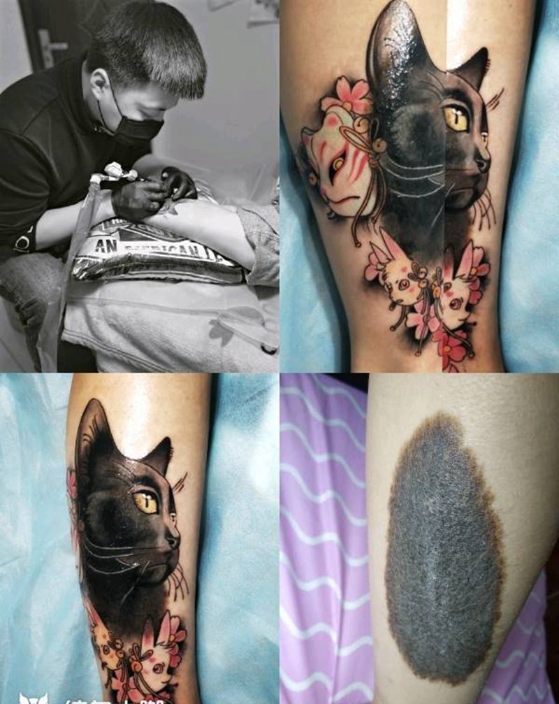 当前位置: 首页 >四川省成都市纹身店-成都楷刺青纹身工作室纹身图案>黑猫遮盖胎记,终于可以穿裙子了纹身图片_腿部New School纹身图案