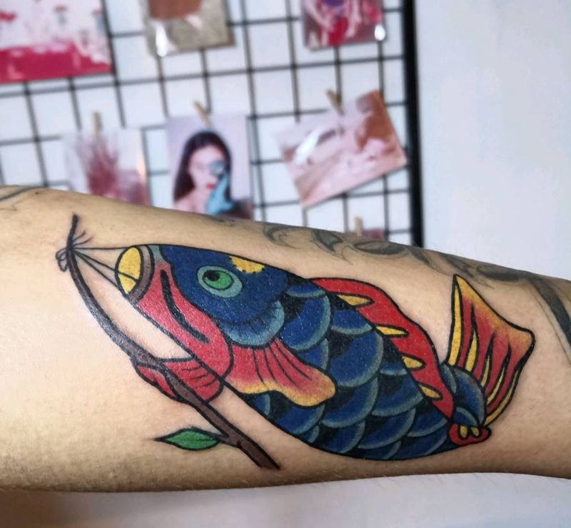 鱼摆摆纹身图片_手臂鲤鱼旗纹身图案