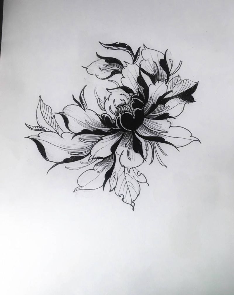 遮盖纹身图片_成品胸部传统植物牡丹纹身图案