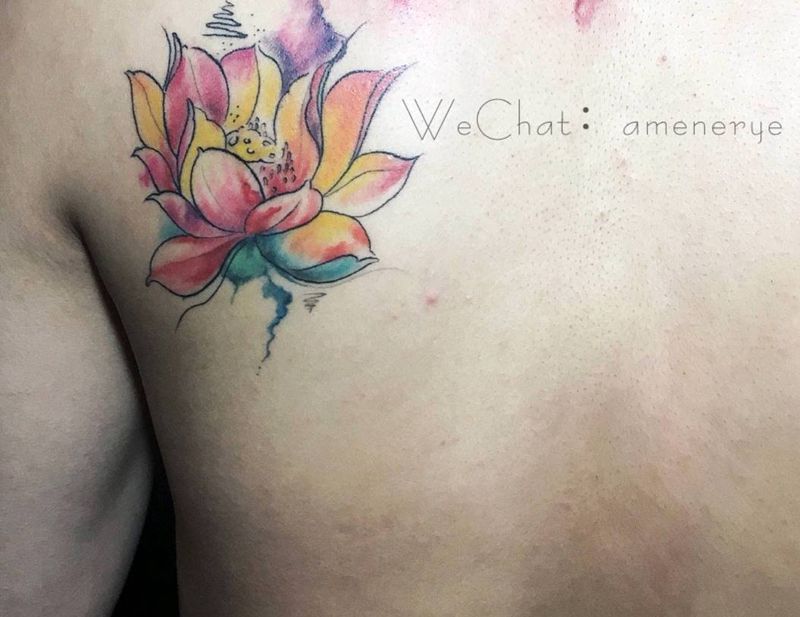 一组15张莲花纹身手