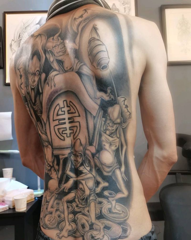 当前位置: 首页 >四川省德阳市纹身店-一墨纹身艺术室纹身图案>五鬼运财纹身图片_背部新传统纹身图案