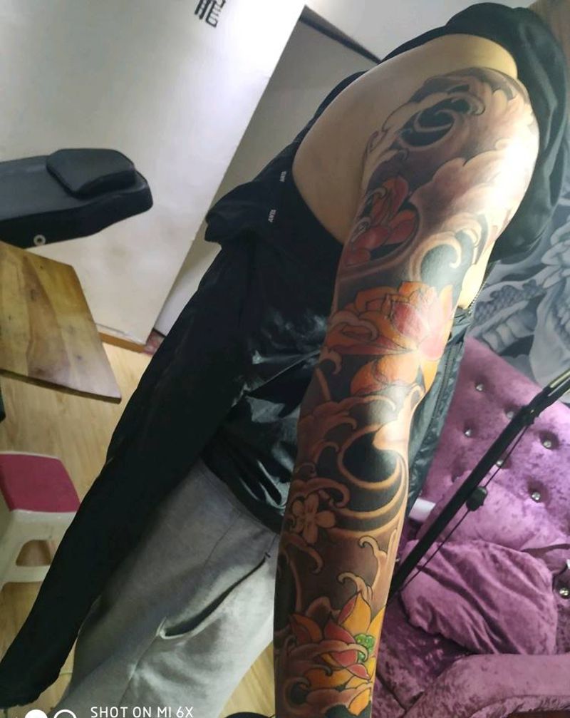 当前位置: 首页 >四川省德阳市纹身店-一墨纹身艺术室纹身图案>荷花浪臂纹身图片_手臂老传统纹身图案