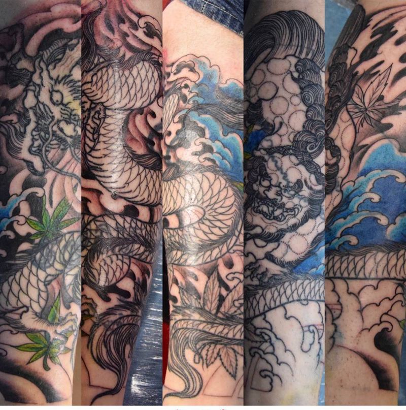 • T网红王老大花腿龙纹身图片_腿部新传统纹身图案