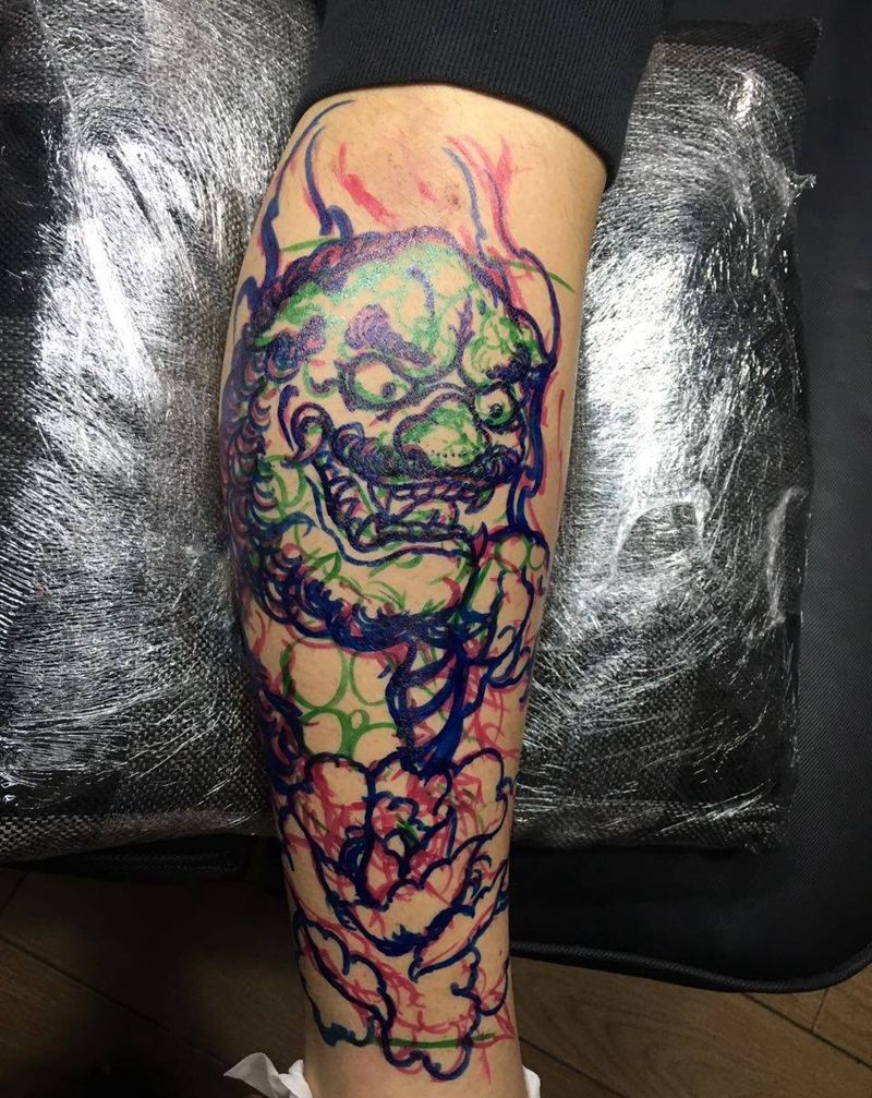 当前位置: 首页 >四川省绵阳市纹身店-幻刺纹身纹身图案>幻刺徒手设计唐狮纹身图片