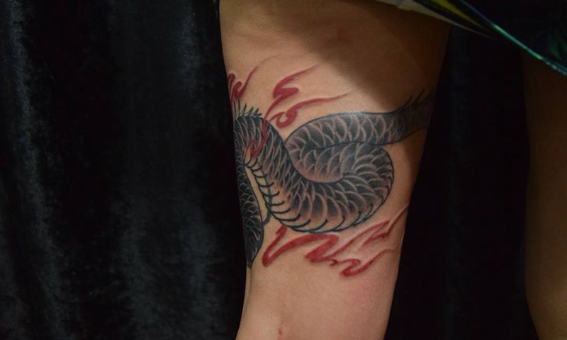 • T网红王老大花腿龙纹身图片_腿部新传统纹身图案