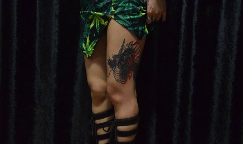 • T网红王老大花腿龙纹身图片_腿部新传统纹身图案